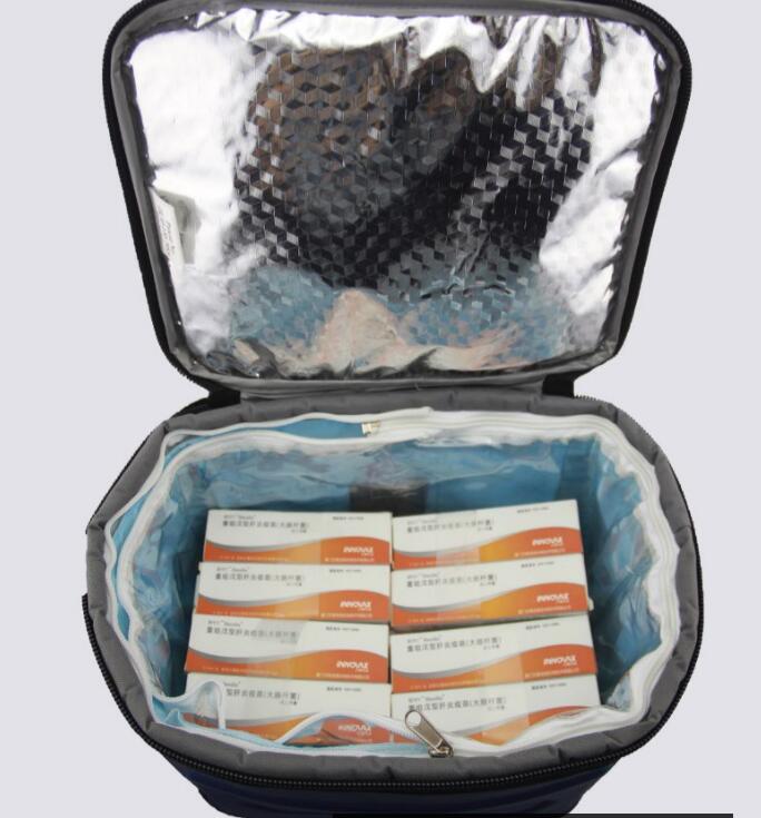 Sac réfrigéré médical zippé intelligent. Thermomètre inclus. Diverses poches latérales et frontales. Doublure intégrant les packs de gel. La doublure tient en place grâce au velcro et peut être aisément retirée pour placer la doublure et les packs de gel au congélateur. Extérieur en tissu polyester 600D+. Doublure zippée en plastique EVA (recto/verso). Poignée de transport et bandoulière confortables. Livrée avec 12 packs de gel souple. Extérieur en Polyester 600D+ solide. Isolation en mousse. Glacière résistante aux chocs et étanche. Dimensions : 8.1Litre / 25x17x19 cm